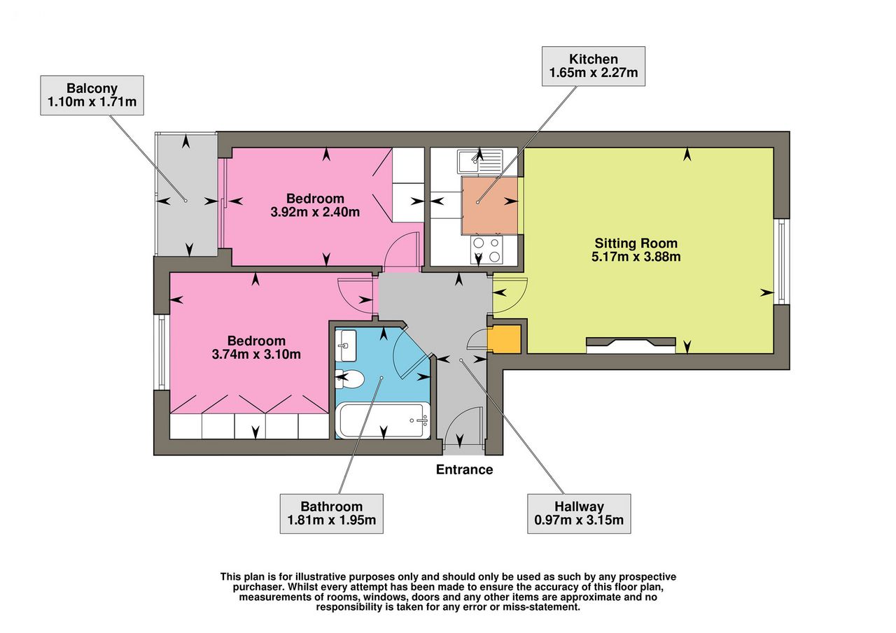 Accommodation consists of Entrance Hallway with Storage Room, Open Plan Living/Dining/Kitchen Area with Fully Fitted Kitchen. 2 Double Bedrooms (one with access to the balcony) and Main Bathroom with Bath & Shower. Early viewing is advised.